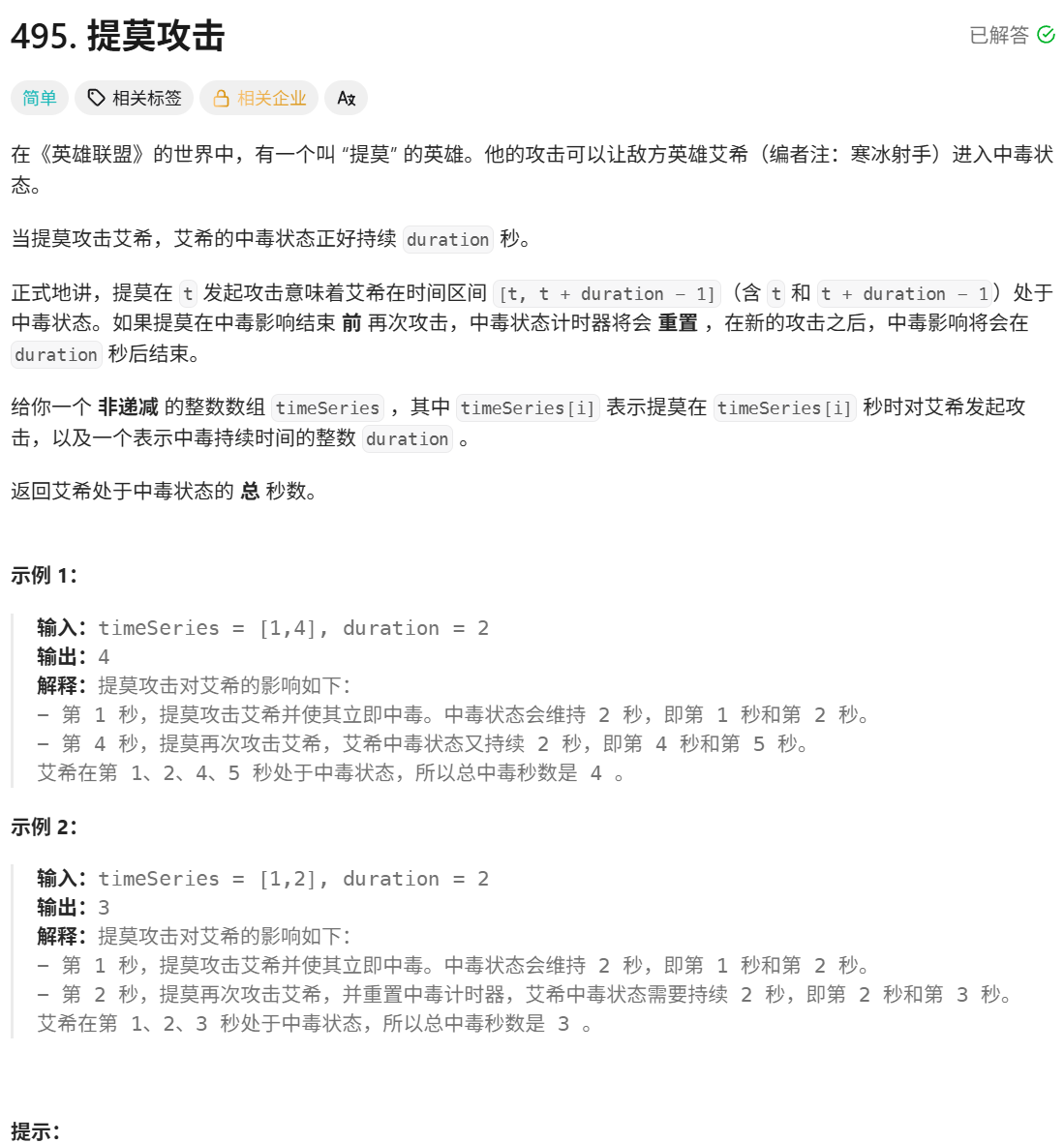 public int findPoisonedDuration(int[] timeSeries, int duration) {