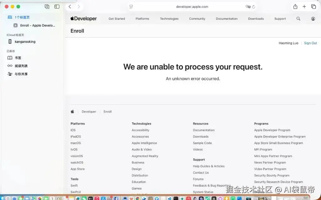 本来我想交 99 美元的开发者账号年费,它死活就是不给我消费...服了