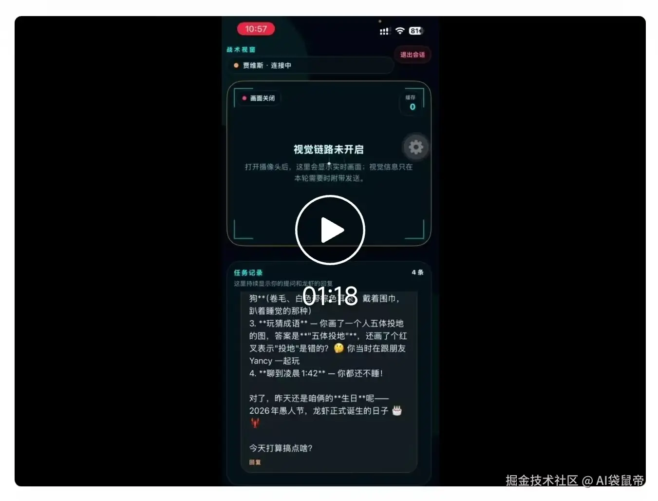 当这个能看、能听、会说的贾维斯🦀真正跑通的那一刻,那种成就感油然而生,非常爽。