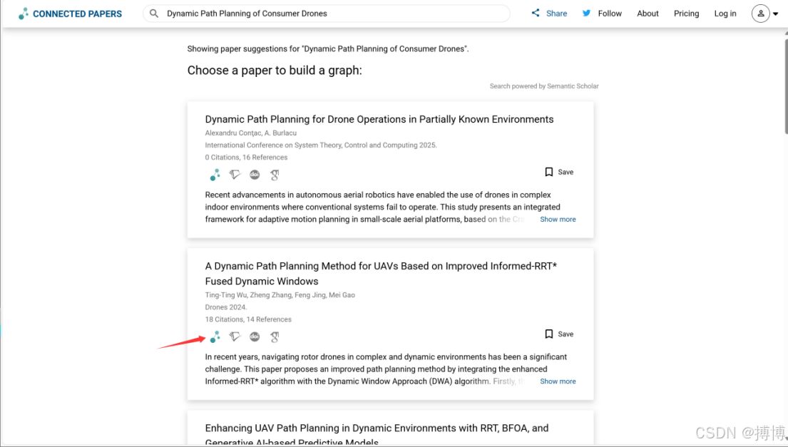 消费级无人机路径规划实战 :输入"Path Planning Algorithms for UAV",可直接导出200 + 核心文献 ,按被引排序快速锁定《UAV Path Planning Using Optimization Approaches: A Survey》(被引200+),并查看其所有前驱/后继文献 ,生成完整引文脉络;支持导出BibTeX,直接用于写作。优势 :开源无广告、数据完整、API免费、国内可直连;劣势 :无AI自动摘要,需手动精读。
