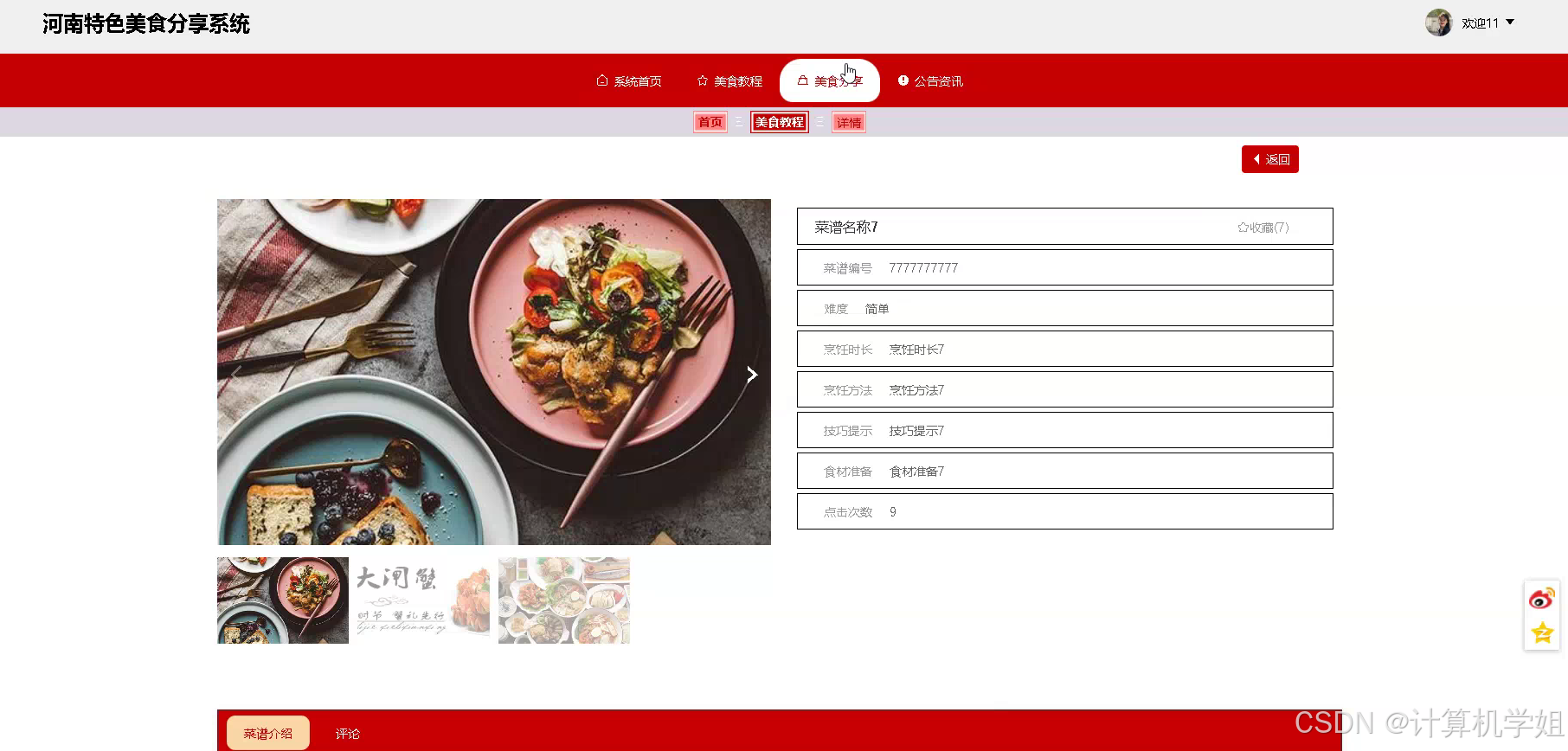 本研究旨在开发一个具有高可用性与文化传播价值的河南特色美食分享系统,核心目标包括:其一,构建统一的美食文化数字档案库,通过标准化数据模型整合分散的美食信息,解决当前美食资料分散、格式不统一的问题;其二,打造沉浸式用户体验平台,利用VUE的组件化开发特性实现美食图片轮播、3D食材展示等交互功能,增强用户对河南饮食文化的感官认知;其三,建立用户-美食-文化的三元互动机制,通过评论、点赞、分享等社交功能激发用户参与文化传播的积极性,形成"发现-体验-传播"的闭环生态;其四,验证低成本技术方案在文化类系统开发中的可行性,采用开源技术栈降低开发成本,为中小文化机构提供经济实用的数字化解决方案;其五,探索传统文化与现代技术的融合路径,通过数据挖掘分析用户偏好,为河南美食的标准化生产、品牌化运营提供数据支持,助力传统饮食文化实现创造性转化。最终,该系统将作为河南饮食文化的重要数字载体,既满足公众对地域美食的信息需求,又为文化传承者提供创新传播工具,推动河南美食文化从地域性符号向全国性文化IP升级。
