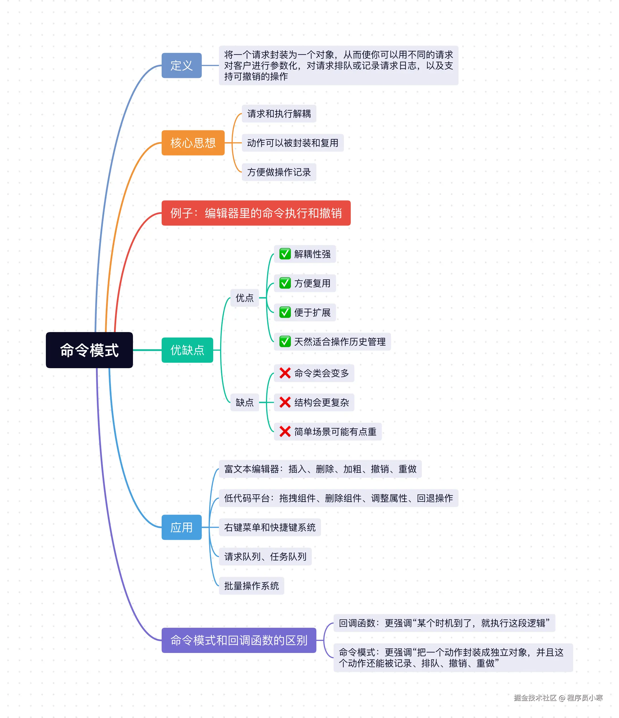 - ❌ 简单场景可能有点重:如果只是一个很简单的按钮点击,硬上命令模式可能有点过度设计。