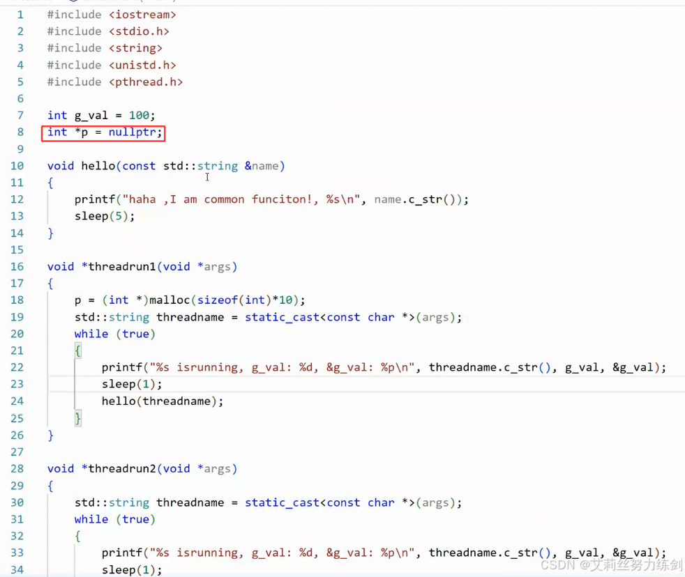 证明了所有的线程(多线程)共享同一个虚拟地址空间,采用同一个全局变量------共享全局变量。