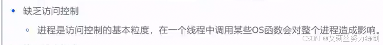 多线程对于大部分资源都是共享的(能够访问到的资源大部分都是共享的),所以说缺乏访问控制。