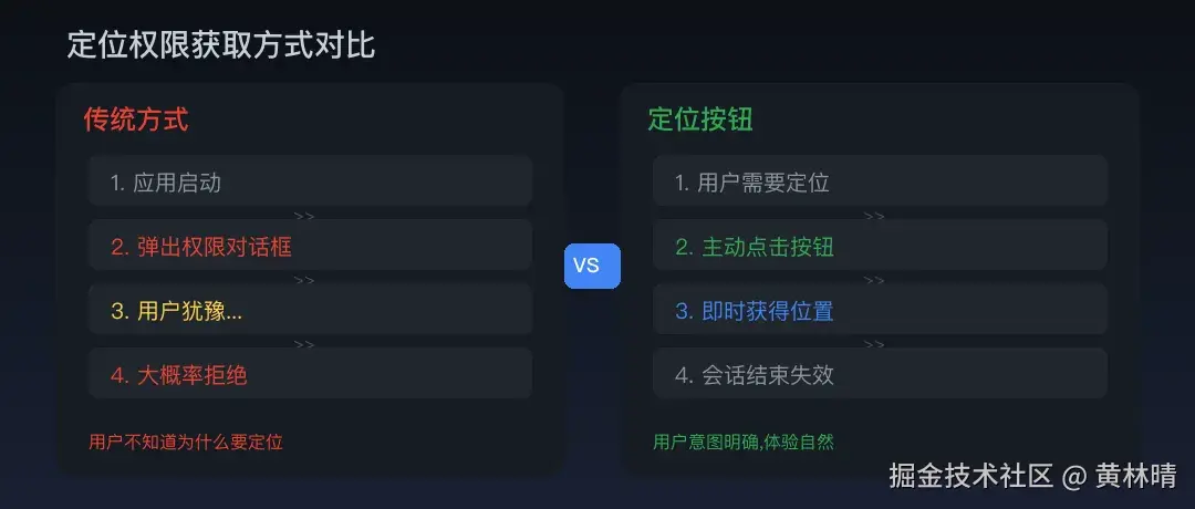 对用户来说,这是好事。对开发者来说,与其抱怨权限越来越难拿,不如拥抱这个趋势:用定位按钮替代权限弹窗,让用户主动给你定位,而不是被动同意。