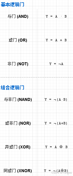 四个基本逻辑门,它们用电路物理实现了最基本的布尔运算。所有复杂的处理器和数字系统,归根结底都是由这四种基本门组合而成。