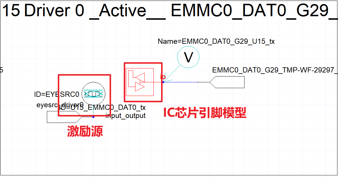 此处,需要仿真的内容是主芯片发送数据,EMMC芯片接收数据,因此需要设置主芯片(U15)侧的引脚为发送: