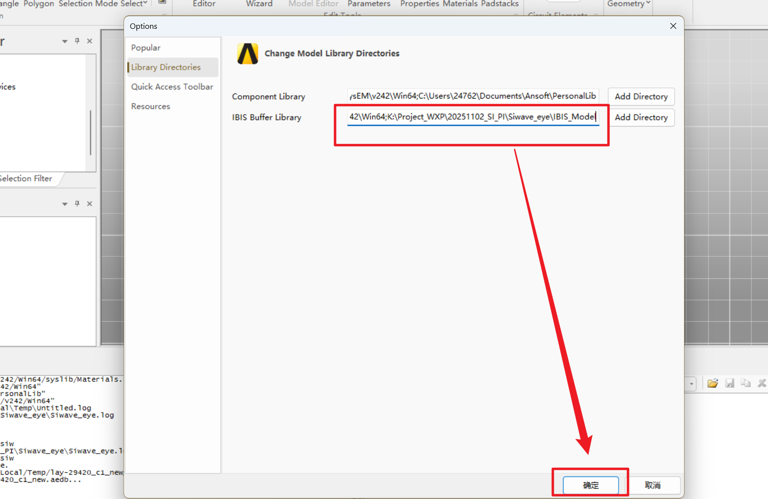 按照下面步骤添加该文件夹为ibis库路径: