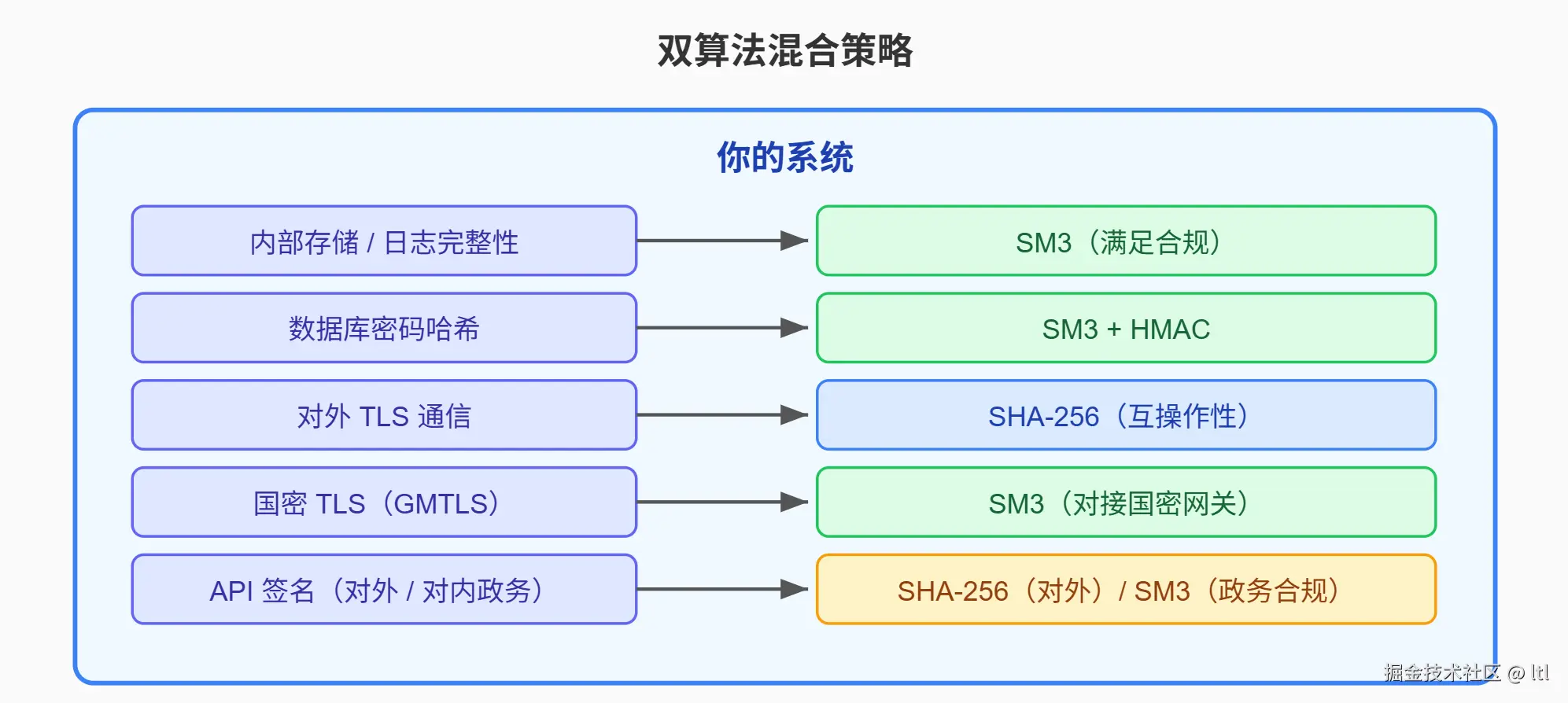 那么没得选------SM3 是必选项。《密码法》和相关规范明确要求使用国密算法。