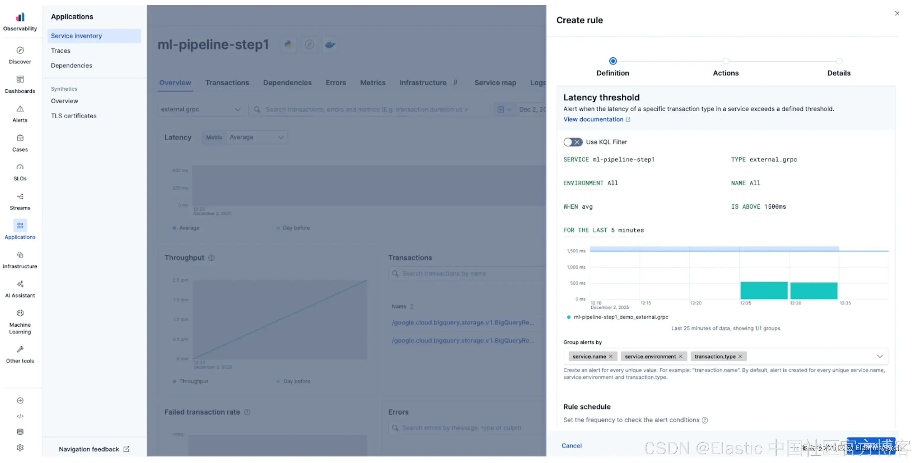 - 对错误率、延迟或吞吐量设置手动或异常检测告警