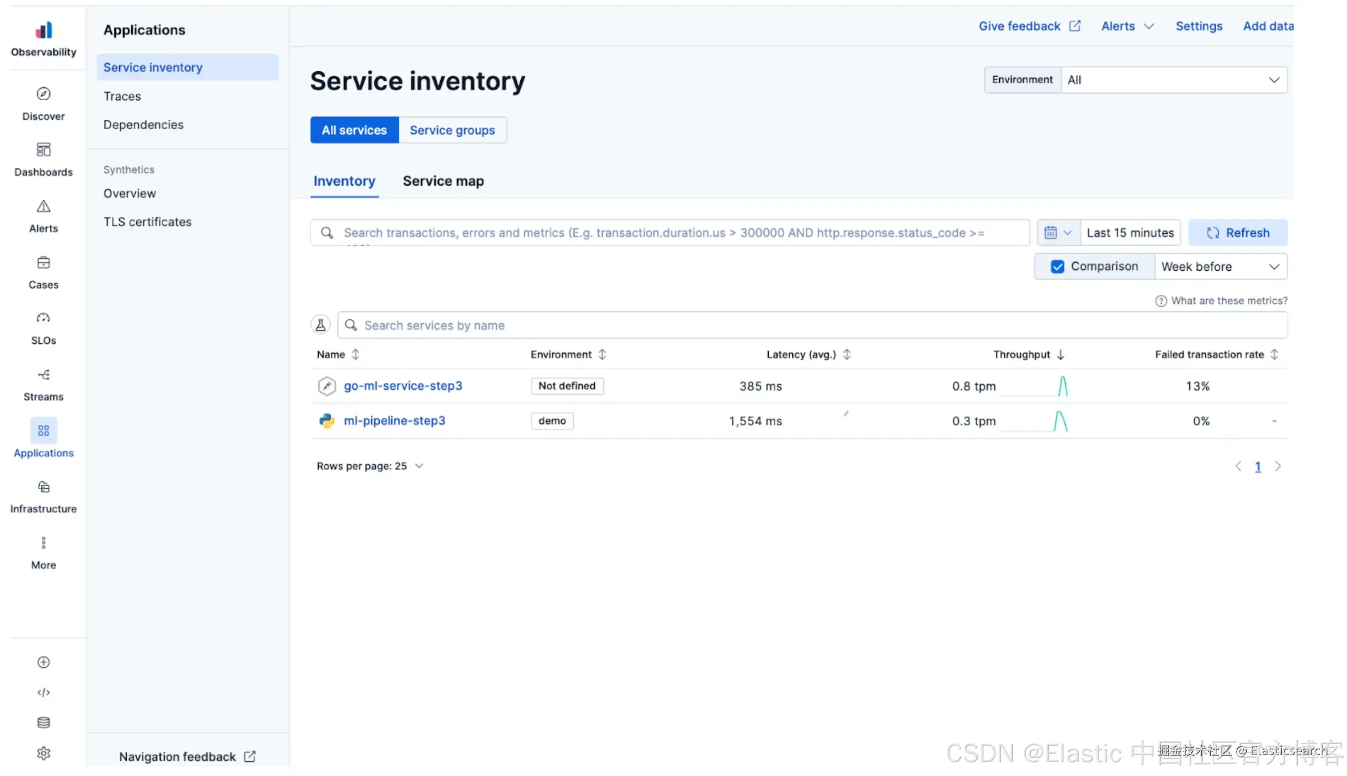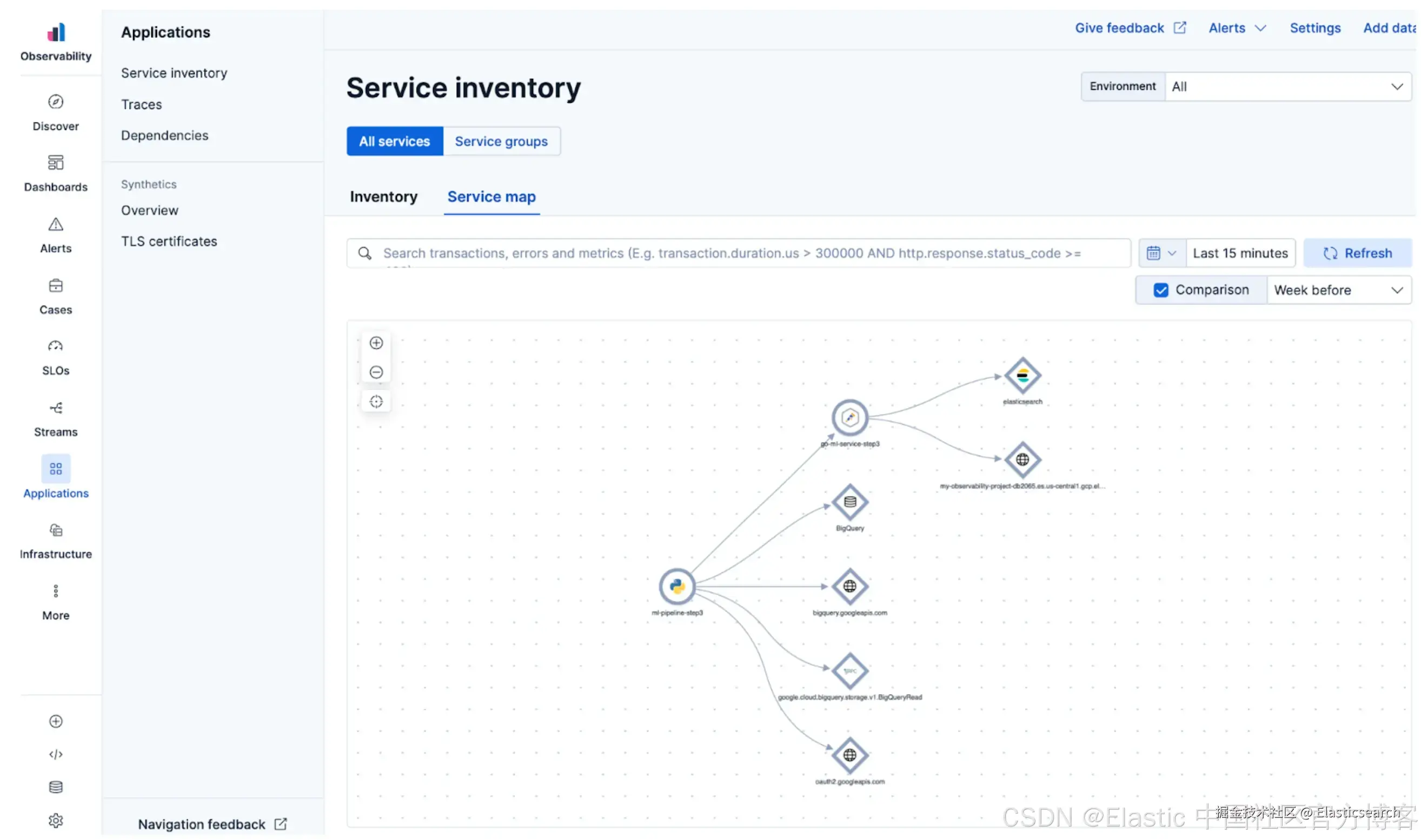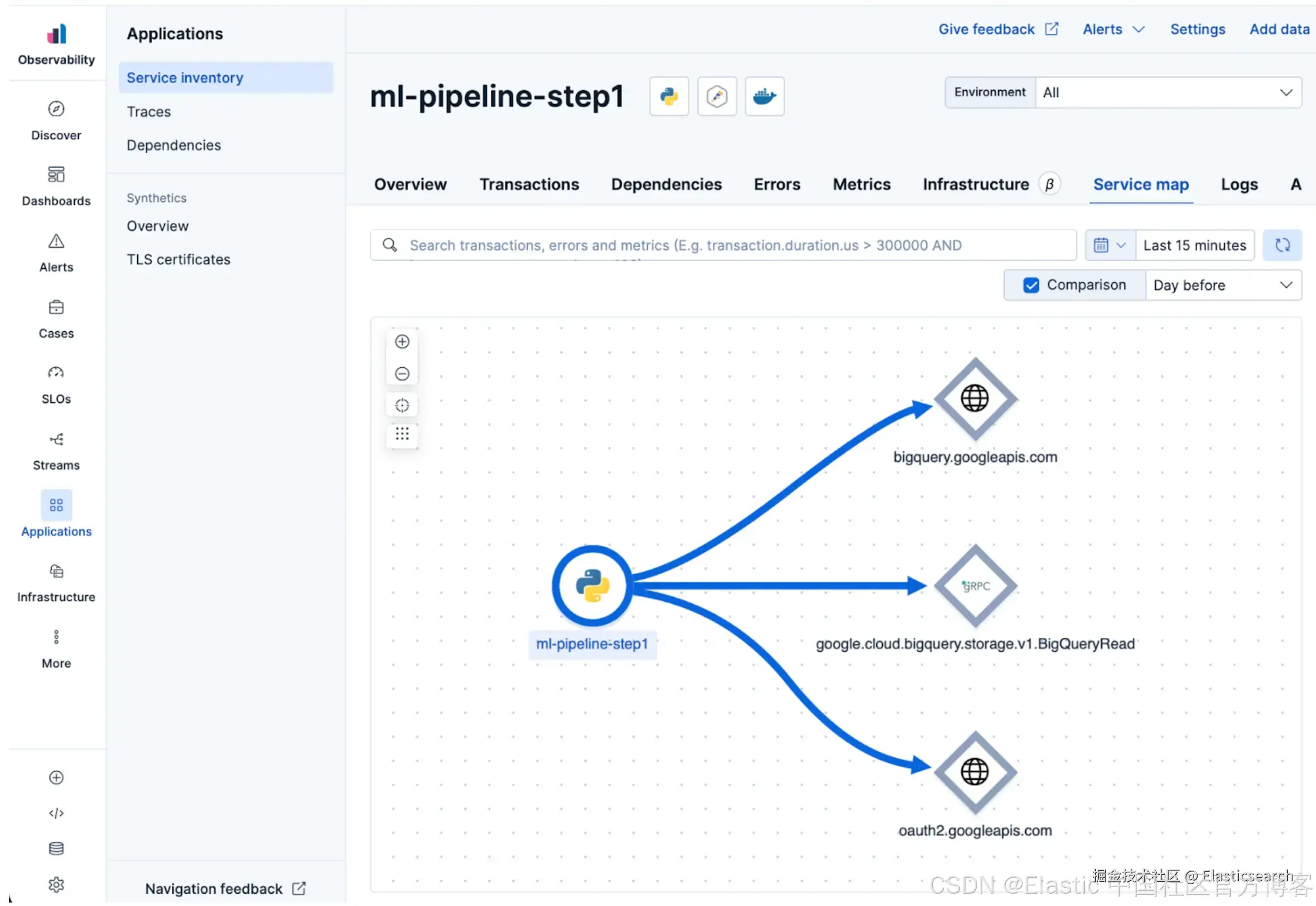 本指南展示了如何使用 OpenTelemetry 和 Elastic 关联 traces、logs 和 metrics,以跟踪运行、比较模型行为,并在 Python 和 Go 服务之间使用共享上下文来追踪请求。