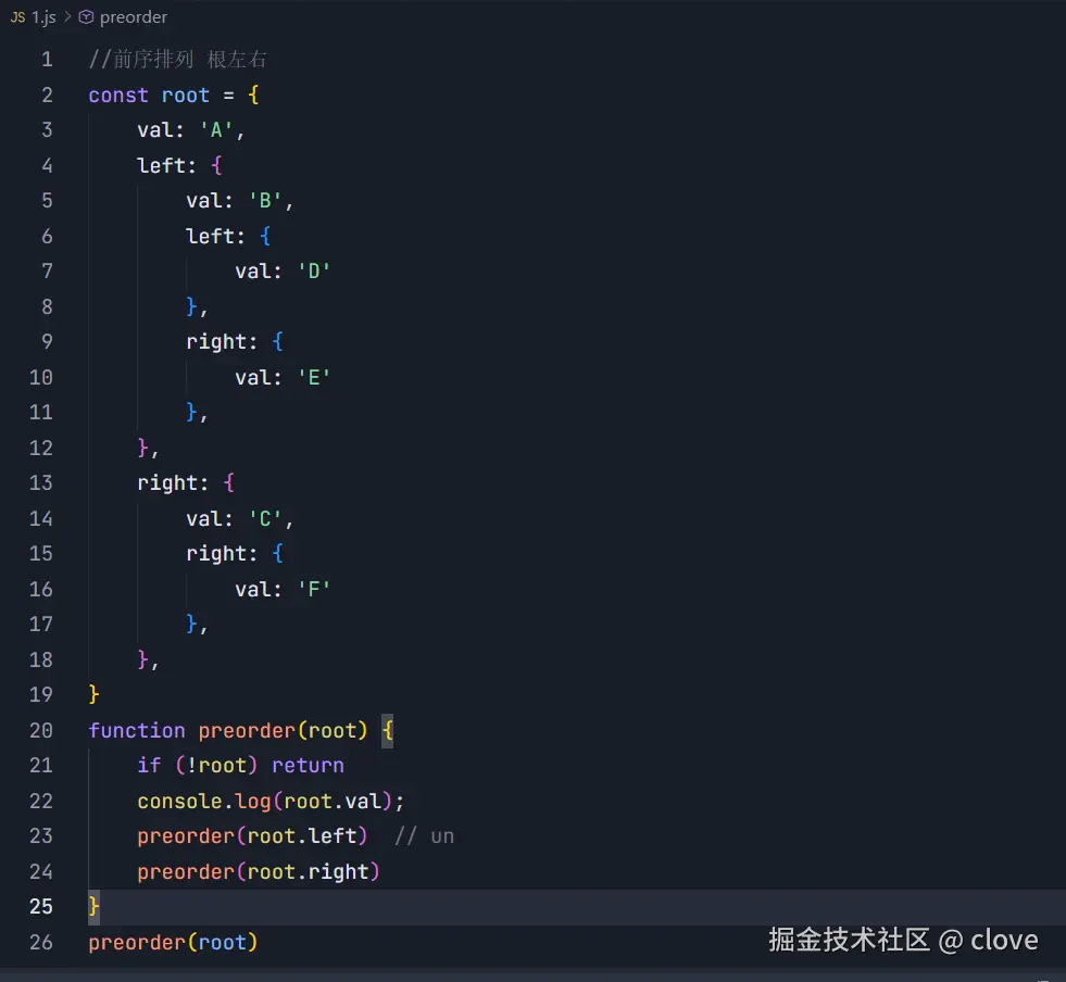 前序排列 (根左右)代码样式