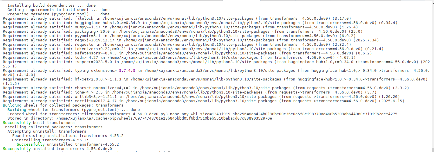 所以采用报错信息提供的第二种方案:pip install git+https://github.com/huggingface/transformers.git