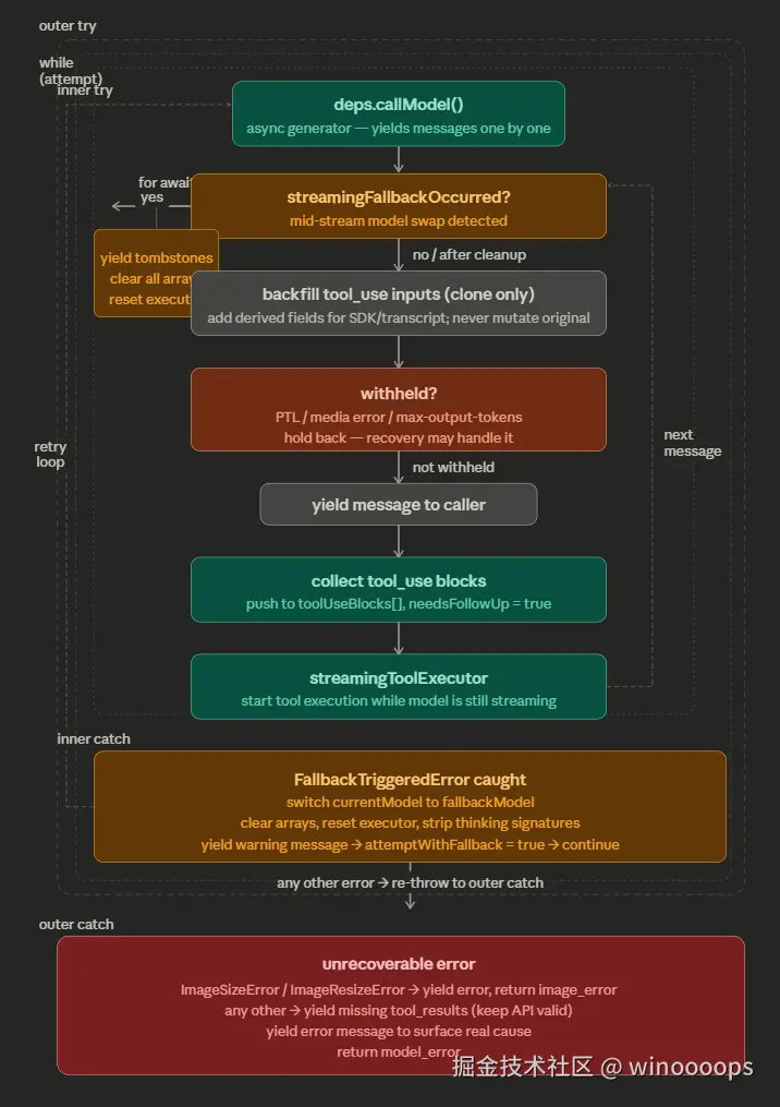 // 可恢复:切换到 fallbackModel,tombstone 部分消息,