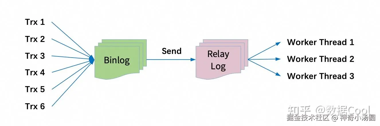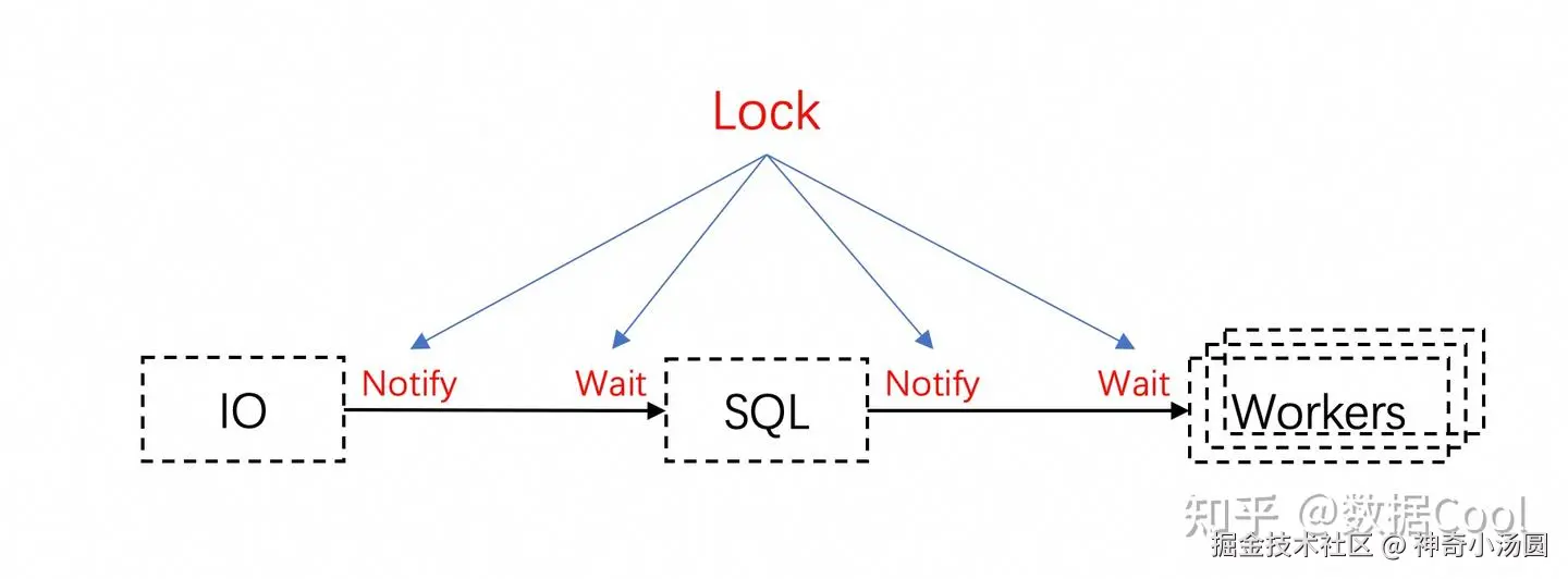 熟悉MySQL的朋友会知道,多线程复制中有IO,SQL和Worker三类线程,IO线程负责从主库收取binlog event;SQL线程负责将收到的binlog event分发给Worker线程;Worker线程有多个,负责并行应用事务。其中,IO线程和SQL线程,SQL线程和Worker线程之间都存在由锁保护的等待和通知操作,高并发时,这些锁很容易成为性能瓶颈。
