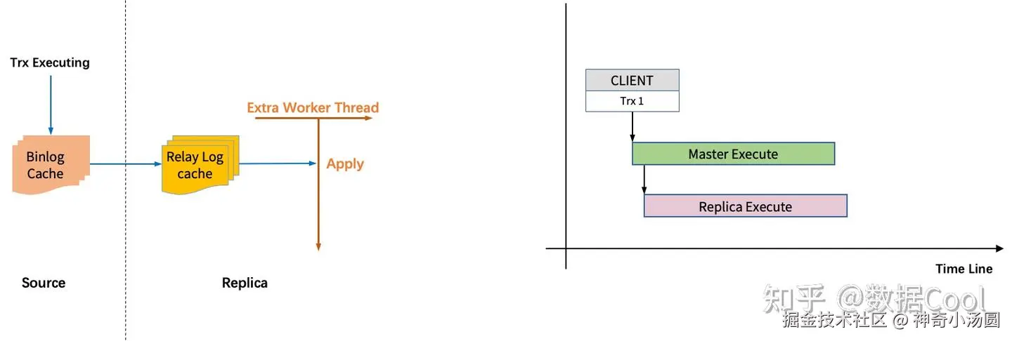 大事务和DDL是MySQL中最典型的复制延迟问题,其原理如上图所示。在MySQL中,大事务和DDL都是在提交时写binlog,随后才会被传输到从库并应用。因此,大事务和DDL在从库执行多久,就会产生多久的复制延迟。
