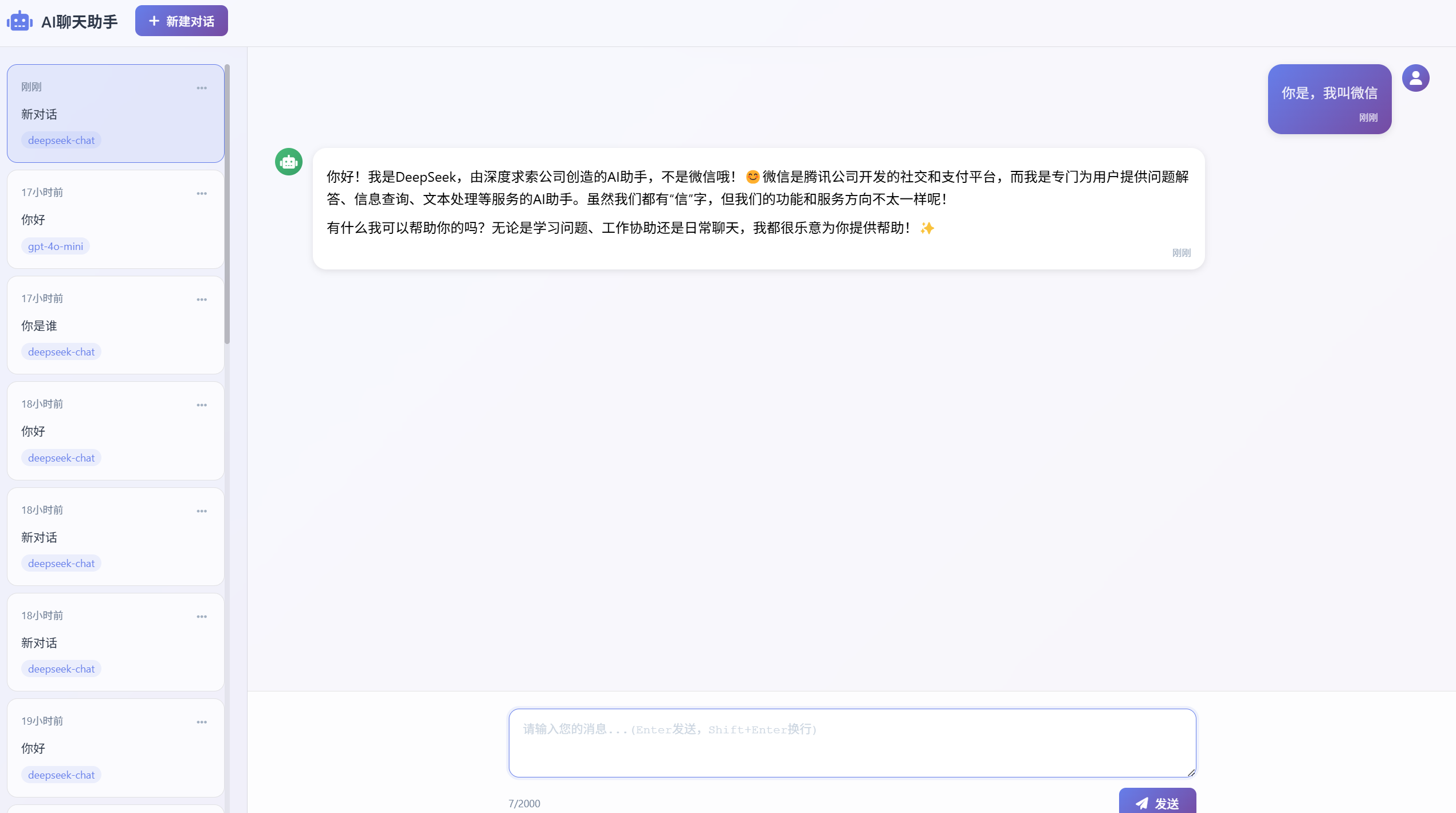 | TC004 | 发送消息(全量) | POST /api/message | 返回完整的AI响应 |