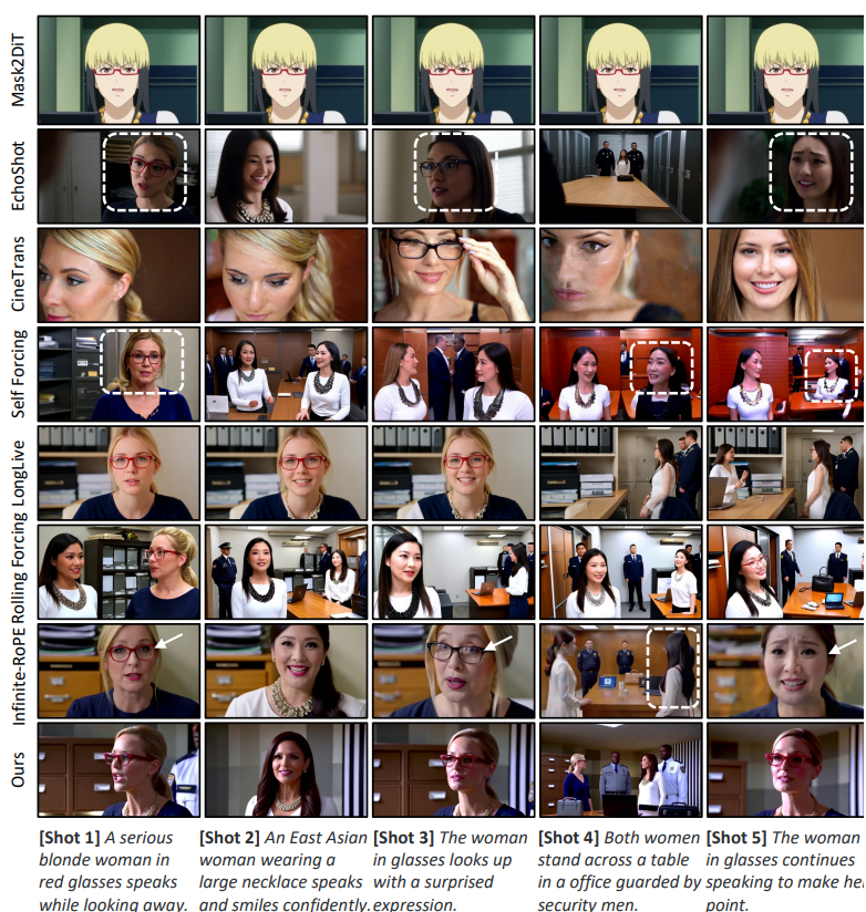 快手可灵团队提出了一种全新的多镜头长视频生成框架ShotStream,它不再是简单地延长视频时间,而是让 AI 真正学会了"导演思维":自动规划分镜、智能控制运镜、无缝处理场景切换。ShotStream 能够根据一个故事脚本,直接生成包含多个镜头、多种景别、流畅转场的完整视频序列,且角色与场景在不同镜头间保持高度一致。这标志着 AI 视频生成从"玩具"正式迈向了"电影制作"的门槛!ShotStream 是一种新颖的因果多镜头架构,可实现交互式故事讲述和高效的即时帧生成,在单个 NVIDIA GPU 上可达到16 FPS 。