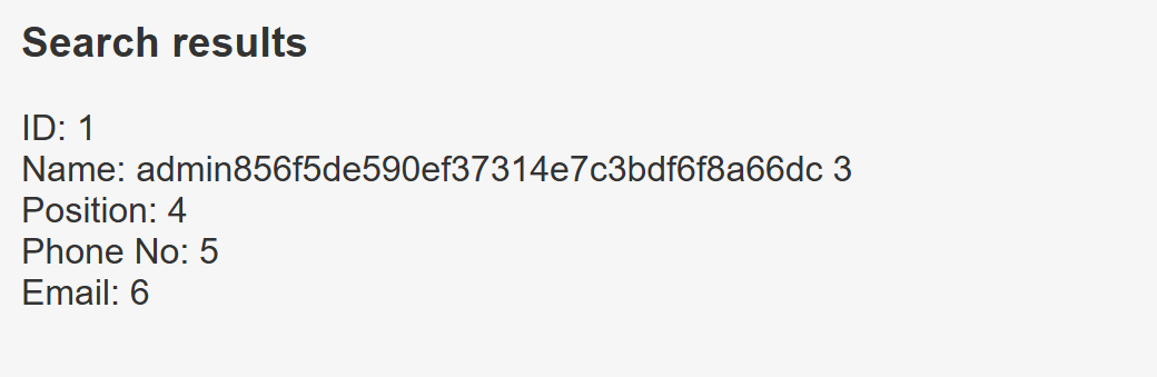 echo "ID: " . $row["id"]. "<br/>" . "Name: " . $row["firstname"]. " " . $row["lastname"]. "<br/>" . "Position: " . $row["position"]. "<br />" . "Phone No: " . $row["phone"]. "<br />" . "Email: " . $row["email"]."<br/><br/>";
