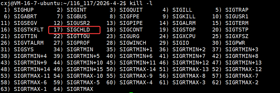 此时父进程确实是执行的handler方法,打印了收到的信号编号17号,代表着子进程退出的时候确实是给父进程发送了17号信号