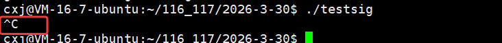 上图是一段 C++ 死循环代码,运行后用 Ctrl+C(终端显示^C)终止程序,这个现象完美对应了我们前面聊的中断、信号、用户态 / 内核态切换的完整逻辑。