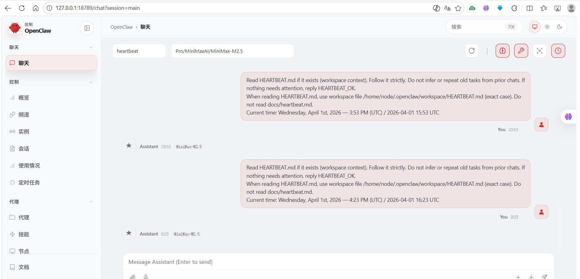 | Web 管理后台 | ✅ 可访问 | 后台地址 http://127.0.0.1:18789/ 已生成,带 Token 可直接登录 |