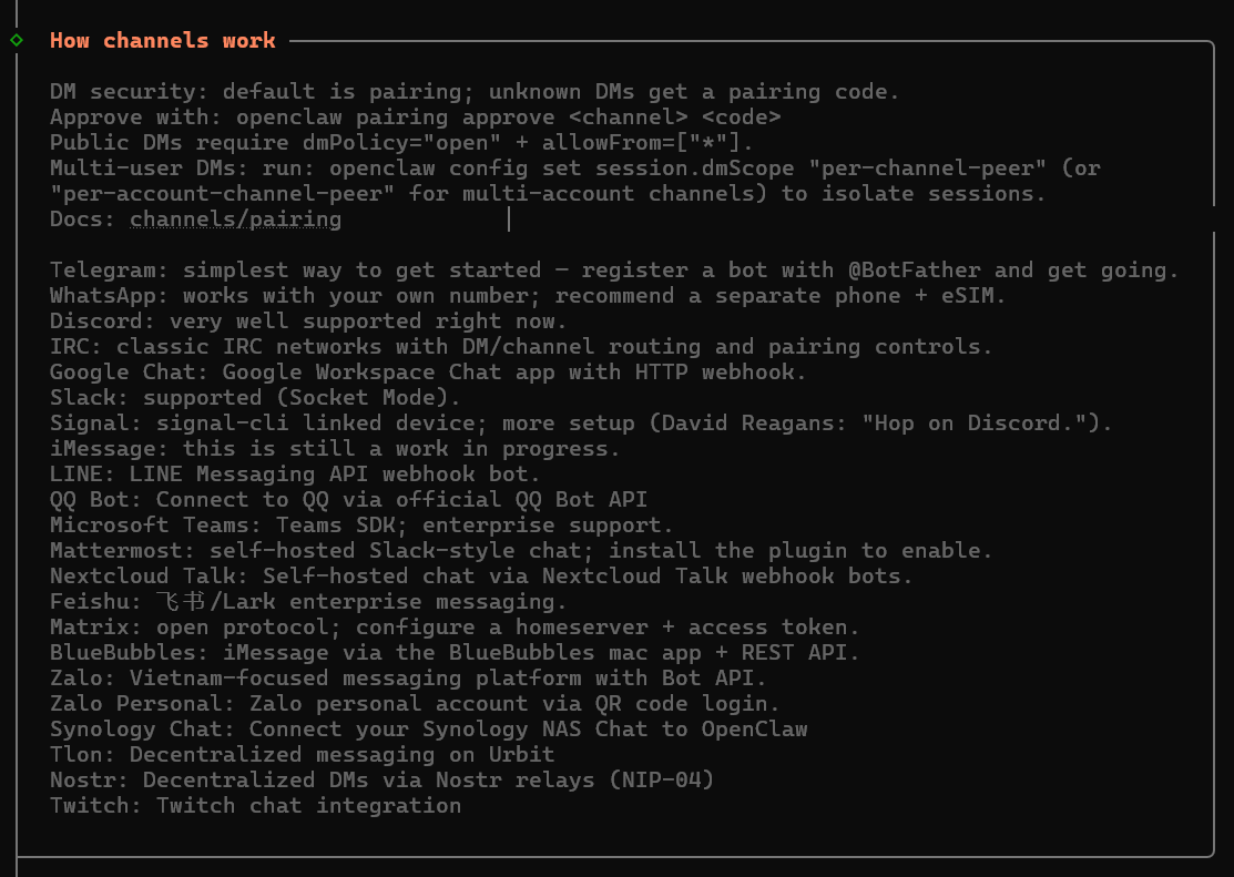 - 可选扩展:支持 WhatsApp/Telegram/Discord 等多渠道接入,可后续通过 Docker 命令添加
