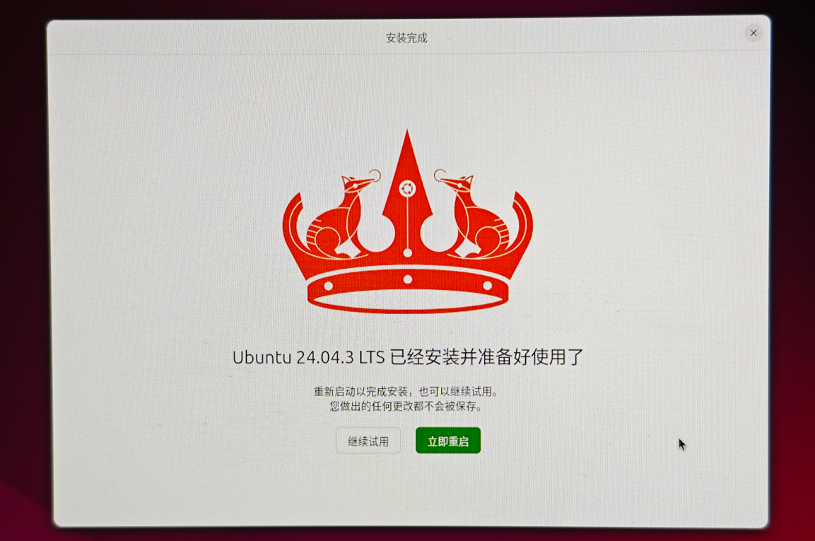 这次应该会自动进入Ubuntu系统了,你可以打开终端执行"free -h"命令看一下是不是已经有交换分区了。如果没有的话,你可以使用swapon去设置一下,就几个命令,没有难度,如果有需要请自己百度或问AI
