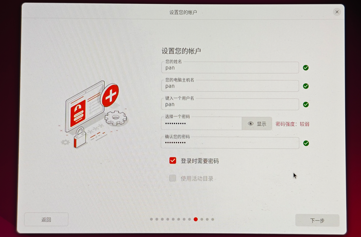 这里可以设置你的账户密码等信息,设置好之后点击"下一步"按钮
