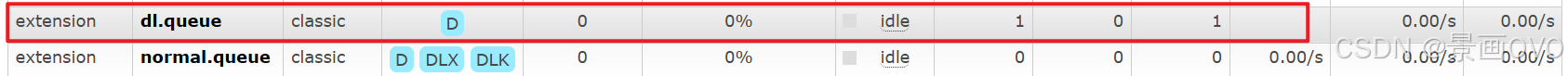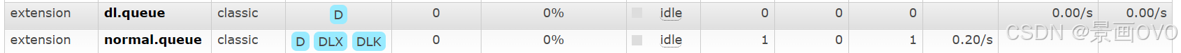 normal.queue 的DLX标志为当定了死信交换机, DLK说明设置了死信交换机的RoutingKey
