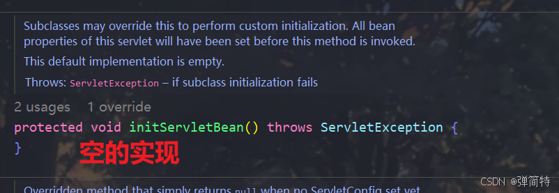 你会发现这个方法是空的,然后由它的子类来实现,这样的设计模式叫做模板方法模式。