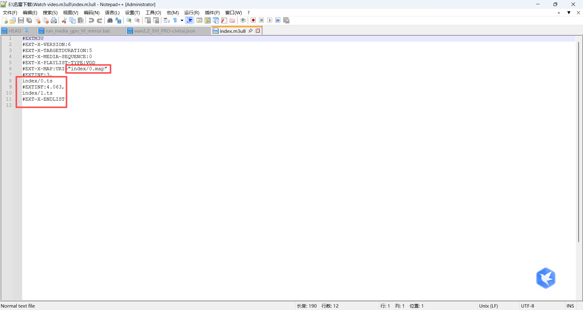 这个文件主要就是定位,那些ts才是视频文件,所以我们得先看看定位有没有问题,直接记事本打开m3u8