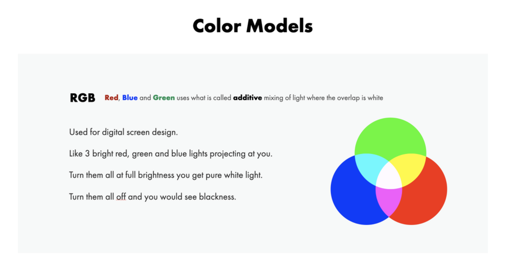 用于屏幕,红 / 绿 / 蓝叠加变亮,最终为白色。