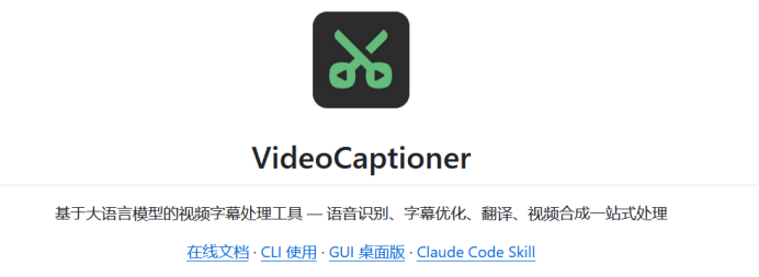 语音转字幕、字幕优化、字幕翻译、双语字幕、添加字幕到视频中;这些功能无需任何配置,安装即可使用。