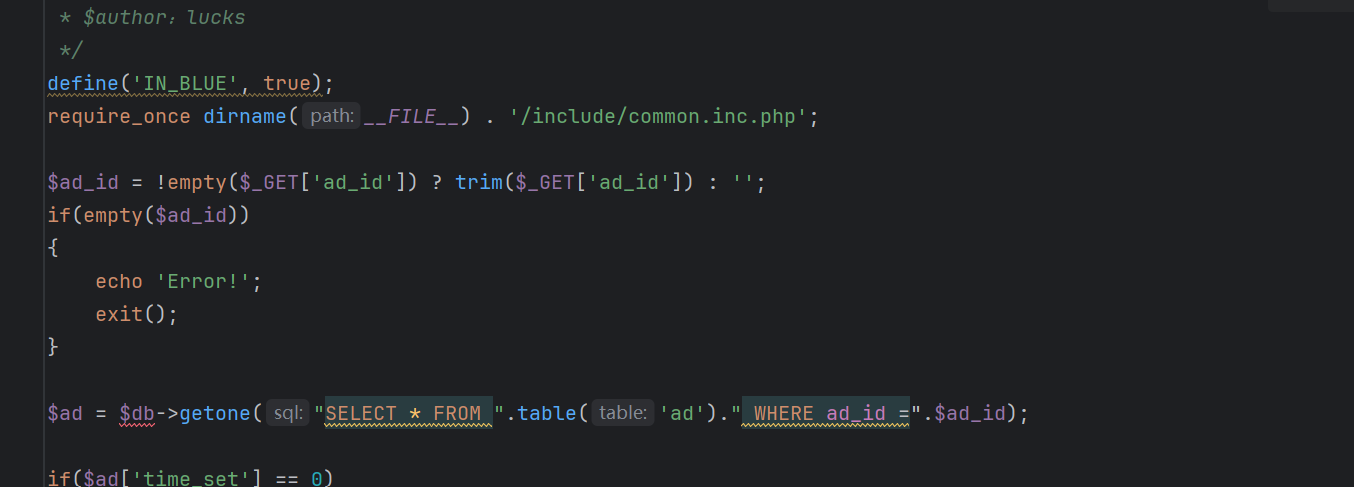 - 参数的话如果没有 GET\[\]** 和 **_POST[] 的话,就直接输入 ad_id即可
