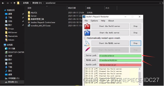 wowServer\MySQL\bin - 启动MySQL服务:点击【Start the MySQL server】