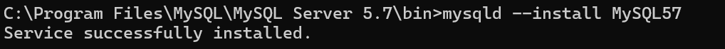 mysqld --install MySQL57 --defaults-file=C:\ProgramData\MySQL\MySQL Server 5.7\my.ini