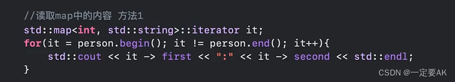 在此代码片段中,it 是一个迭代器,它指向 std::map容器中的一个元素。it->first 和 it->second 分别用来访问 std::pair 中的第一个和第二个元素,即 std::map 中的键(key)和值(value)。例如,如果it是指向std::map<int, std::string> 中的一个元素的迭代器,那么 it->first 将给出该元素的键(一个 int 类型的值而 it->second 将给出该元素的值(一个 std::string 类型的值)。 -