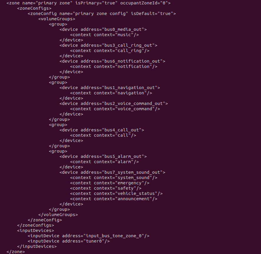 AudioZoneId 1 mapped to OccupantZoneId 1