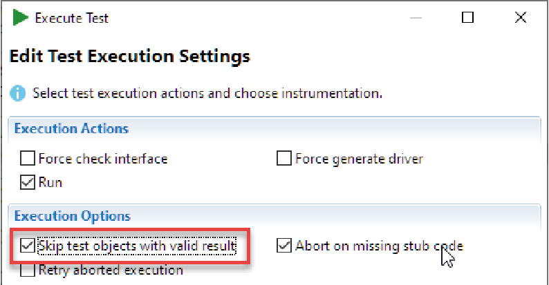 执行测试时,用户可选择仅运行测试对象已发生变更、或自上次执行后已更新的测试: