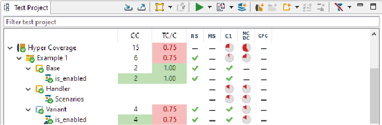 TESSY v5.1 对所有现有视图布局(perspective)和视图(view)的图标进行了重新设计,新的测试驾驶舱(Test Cockpit)视图也同步适配。 覆盖率图标的布局经过优化,占用空间更少,从而使测试驾驶舱视图和测试项目(Test Project)视图中的覆盖率列显示更紧凑。