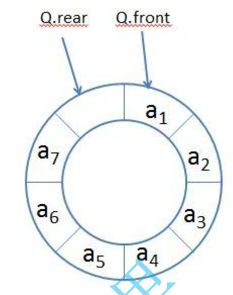 但是在判断队列是否满的时候出现了问题,如图,如果我们把整个队列都填满才算队列是满的话,那么 rear 就会指向队首的 head,这就和 isEmpty()的判断条件一样了,那我们又怎么判断队列是满还是空呢?