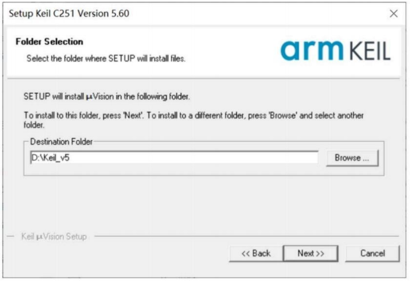(3)将目录定位到 Keil 软件的安装目录,然后确定。安装成功后会弹��如下的提示框: