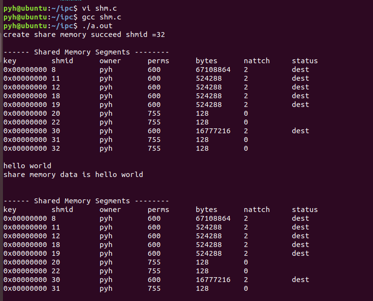 shmid = shmget(IPC_PRIVATE,128,0755);