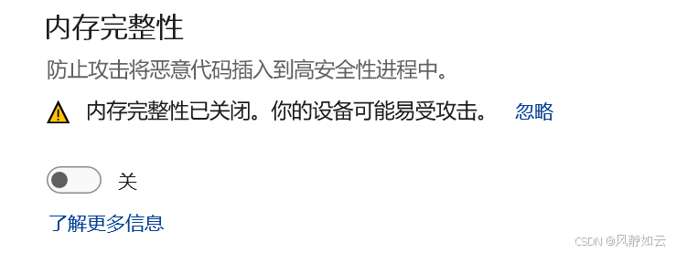 Win11 搜素 设备安全性 -> 内核隔离 -> 内核隔离详细信息 -> 内存完整性 -> 关闭