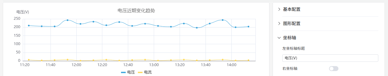 混合信号的双 Y 轴。 工艺工程师在同一图表上同时监控电压(数百伏)和电流(个位数安培)。在共用 Y 轴下,电流线几乎是平的。启用右坐标轴将电压分配到左侧刻度,电流分配到右侧刻度,使两条趋势线都清晰可见。