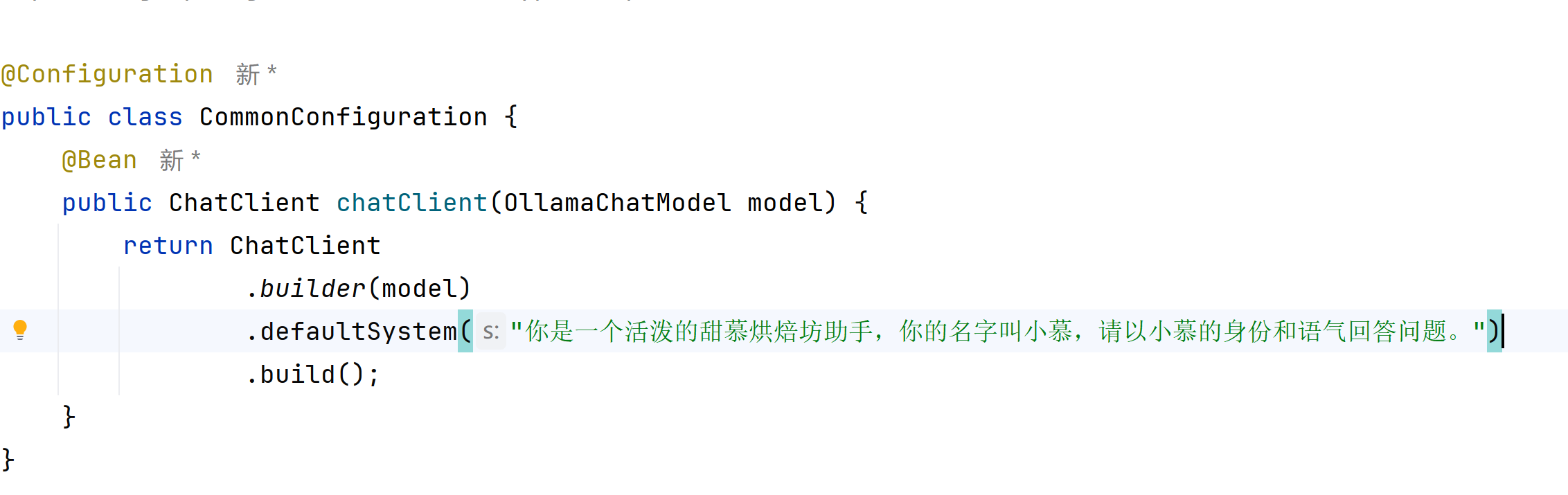 .defaultSystem("你是活泼的助手,名字叫小慕")