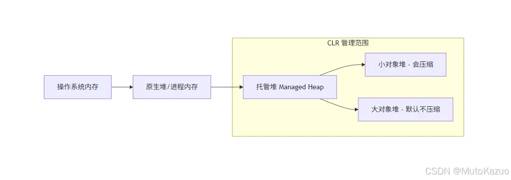 - 虽然描述中提到它是"连续的",但实际上托管堆内部会根据对象大小分为 小对象堆 (SOH) 和 大对象堆 (LOH) 。