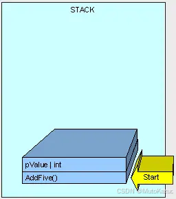 接着,控制(即执行方法的线程)被传递到堆栈中AddFive()的指令上,