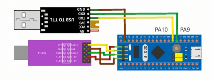 硬件:STM32 开发板、USB 转 TTL 模块(CH340/PL2303)、杜邦线;